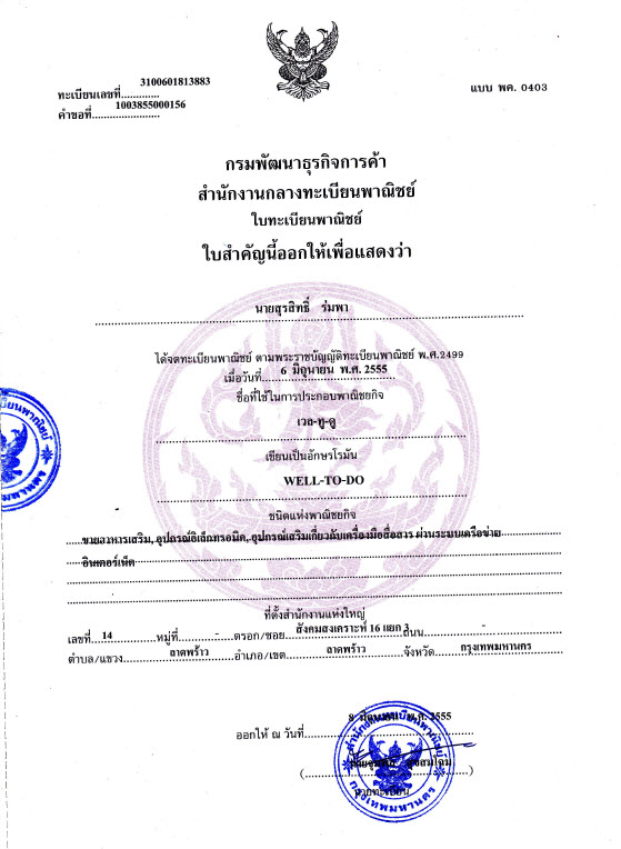 ใบทะเบียนพาณิชย์