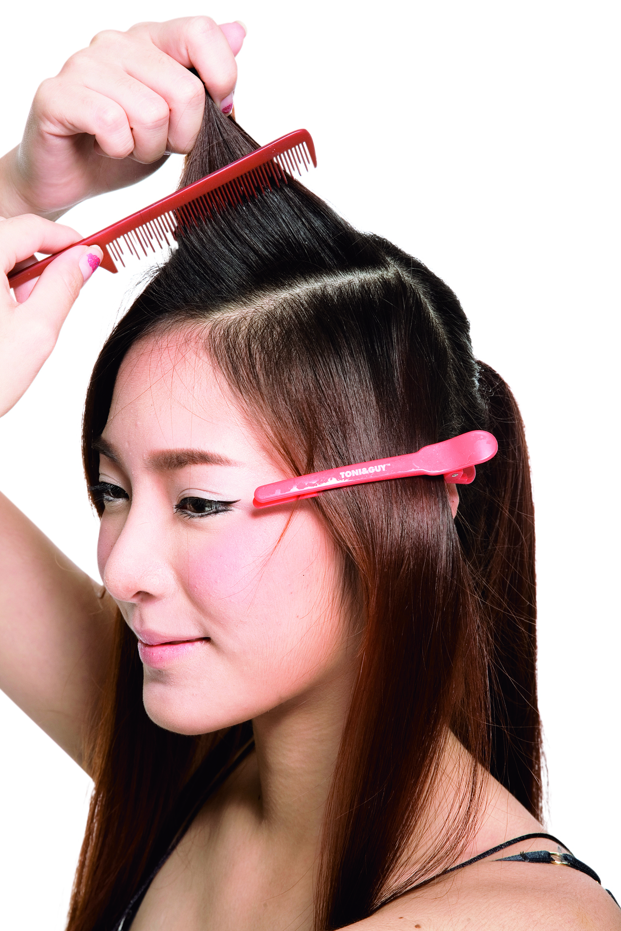 2. หวีเปิดผมด้านหน้าที่แบ่งไว้ขึ้นมาครึ่งหนึ่ง
