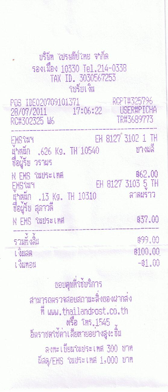 คุณวราพร > EH 812731021 TH ส่งสินค้าให้แล้วนะคะ โอกาศหน้าเชิญเลือกชื้อสินค้าและบริการคุณภาพจากร้านของเราได้อีกนะคะขอบคุณมากๆค่ะ
