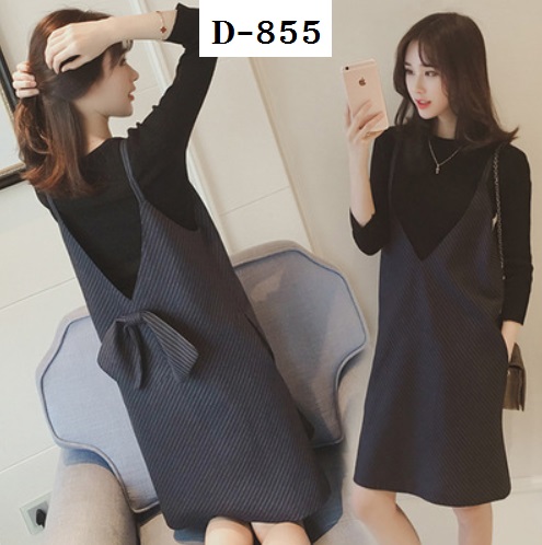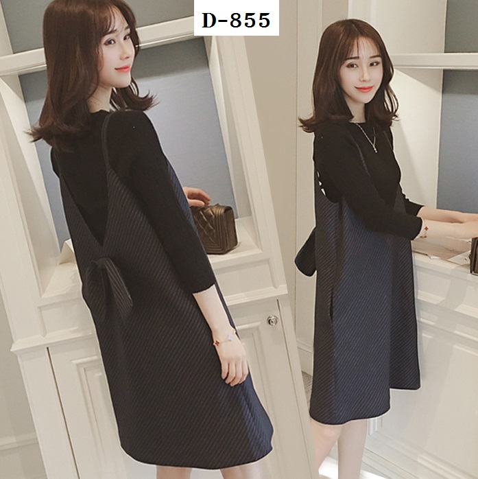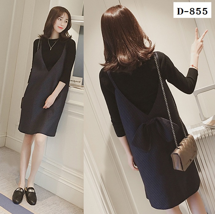 อีเมลล์: assapaporn@gmail.comเอี๊ยมกระโปรงคลุมท้องแฟชั่น ผ้าลายเฉียง แต่งโบว์ด้านหลัง สีกรม+เสื้อยืด