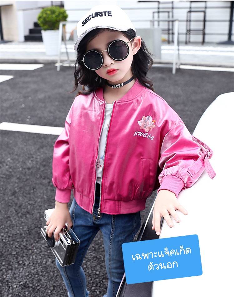 เด็กโต-เสื้อแจ็คเก็ตแขนยาวจั๊มพ์สีชมพูเข้ม ปักนก KONICHIWA ซิปหน้า มีกระเป๋าข้าง ทรงไหล่สโลป ช่วงแขนแต่งเก๋ มีซับใน(ไม่มีเสื้อตัวในและกางเกง) งานสวยน่ารัก ไซส์ 140/150/160