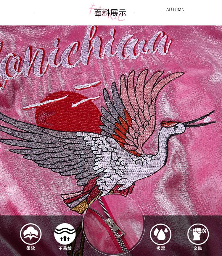 เด็กโต-เสื้อแจ็คเก็ตแขนยาวจั๊มพ์สีชมพูเข้ม ปักนก KONICHIWA ซิปหน้า มีกระเป๋าข้าง
