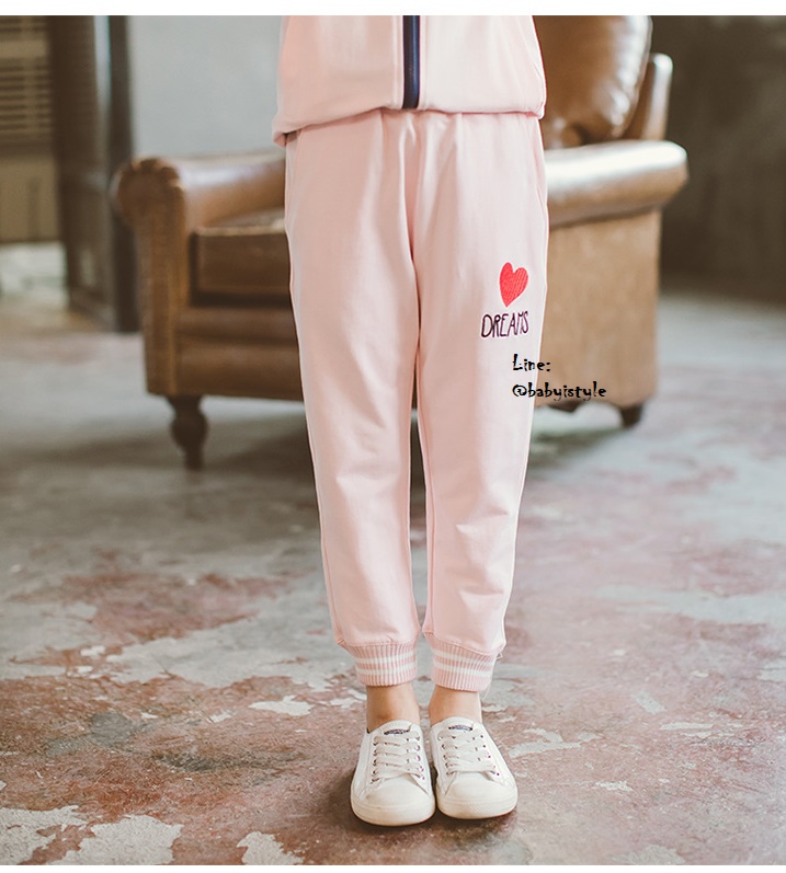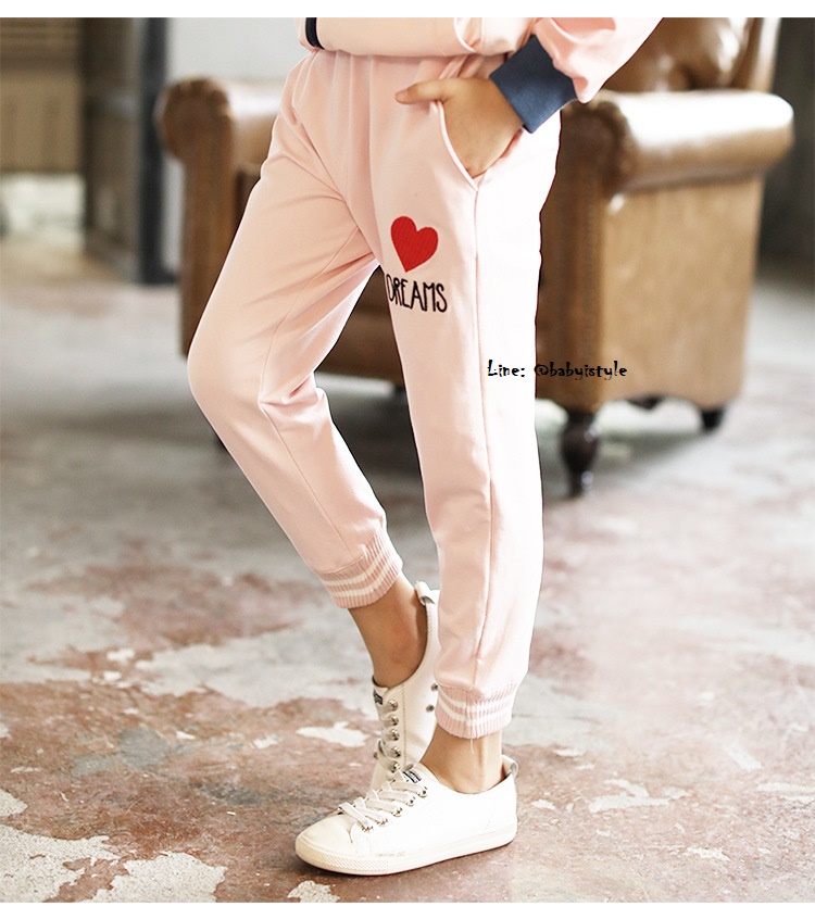 เด็กโต-กางเกงขายาวจั๊มพ์สีชมพู ปักหัวใจDREAMS มีกระเป๋าข้าง เอวยางยืด ผ้าดีมาก สวยน่ารัก