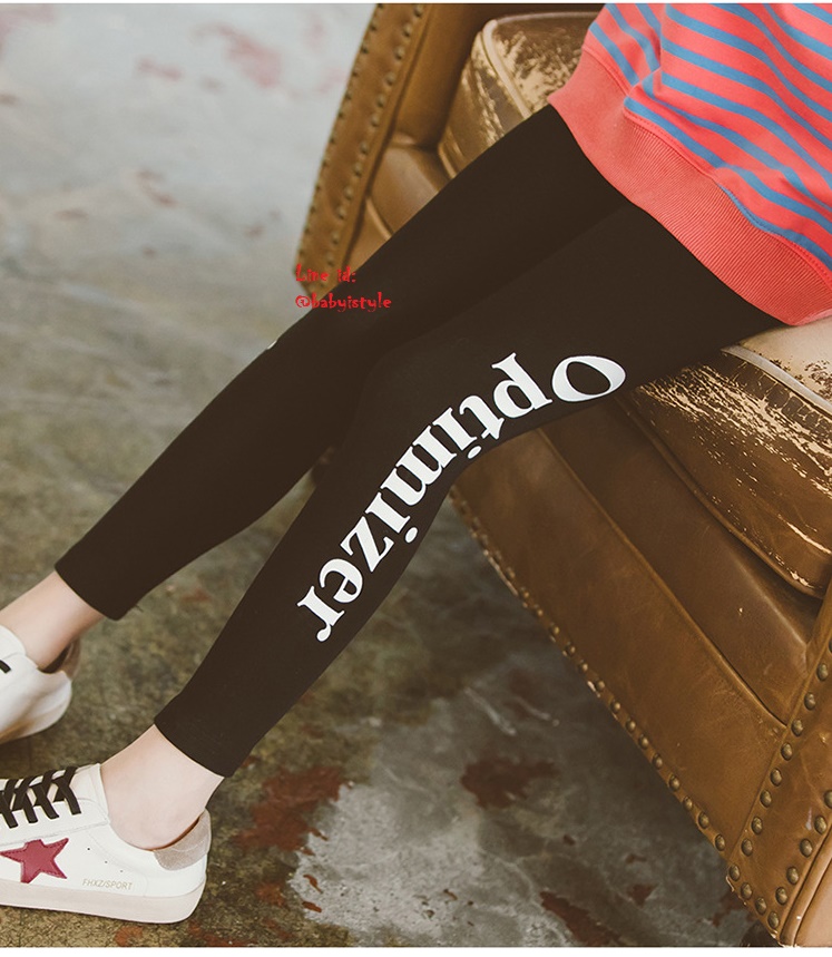 เด็กโต-เลกกิ้งขายาวสีดำ สกรีนอักษรOptimizer เอวยางยืด ผ้ายืดหยุ่นได้ดี สวยเก๋น่ารัก