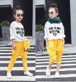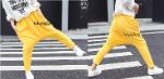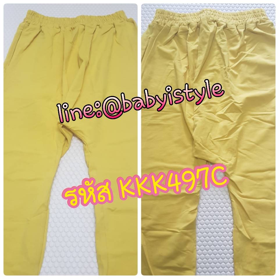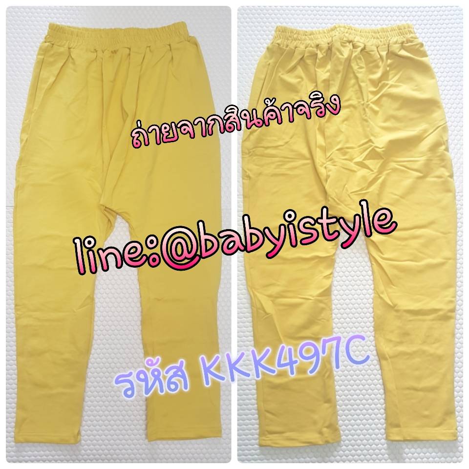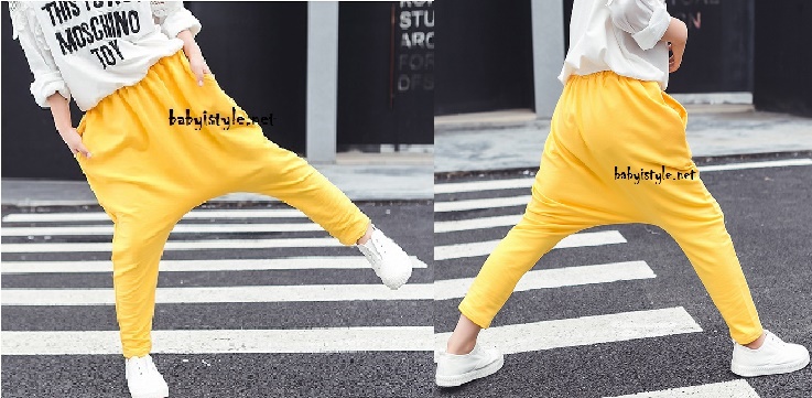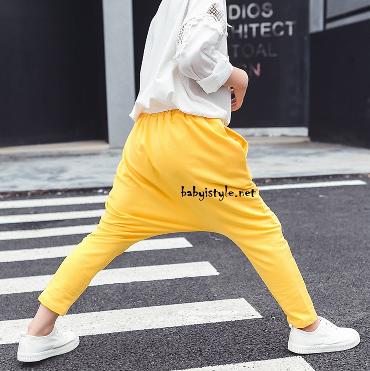 เด็กโต-กางเกงขายาวทรงฮาเร็มสีเหลืองทอง มีกระเป๋าข้าง เอวยางยืด