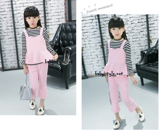 +เสื้อสายเดี่ยวชายระบายสีชมพู+กางเกงขายาวกระดิ่งสีชมพู