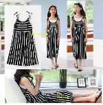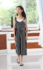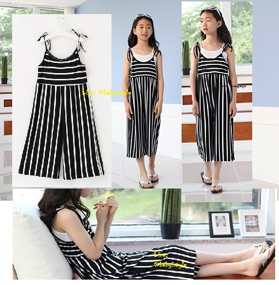 เด็กโต-ชุดจั๊มพ์สูทขายาวสายเดี่ยวแบบผูกริ้วสีขาวดำ(ไม่รวมเสื้อตัวใน) ราคาปกติ 430 พิเศษ 180 บาท*ไม่รวมค่าส่ง