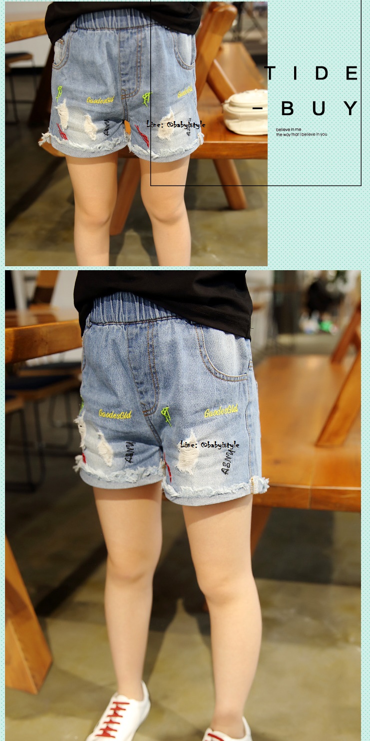 เด็กโต-กางเกงยีนส์ขาสั้นชายปล่อยพับ ปักลายเส้นหัวใจ