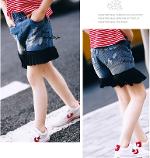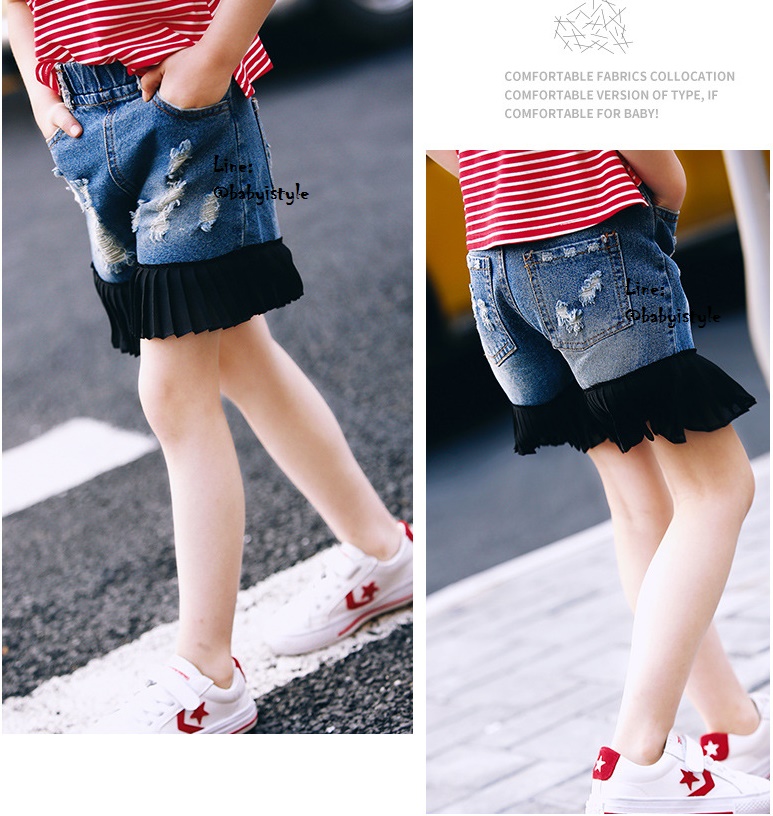 เด็กโต-กางเกงยีนส์ขาสั้นแต่งขาดๆ ชายแต่งผ้าชีฟองสีดำอัดพลีท