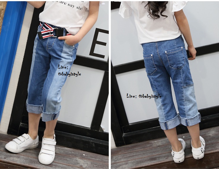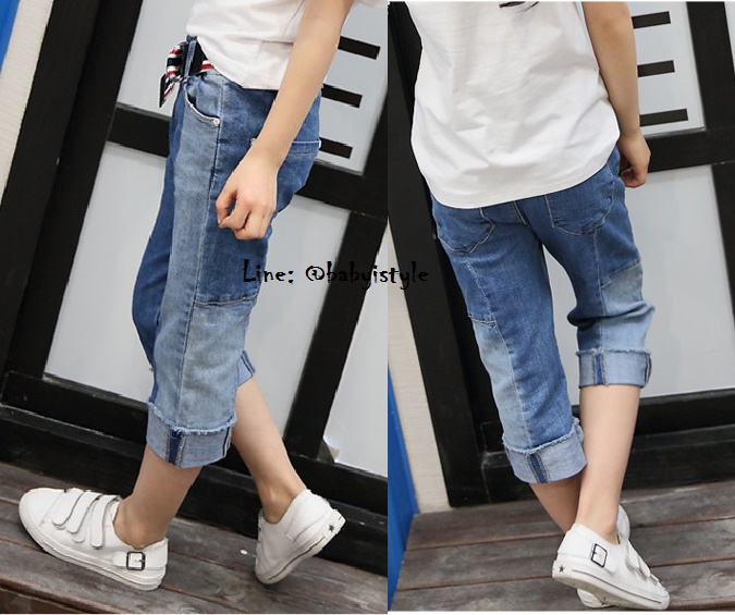 เด็กโต-กางเกงยีนส์สีทูโทน 3 ส่วนพับขาเบิ้ล (ไม่มีเข็มขัด)
