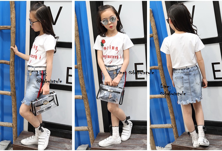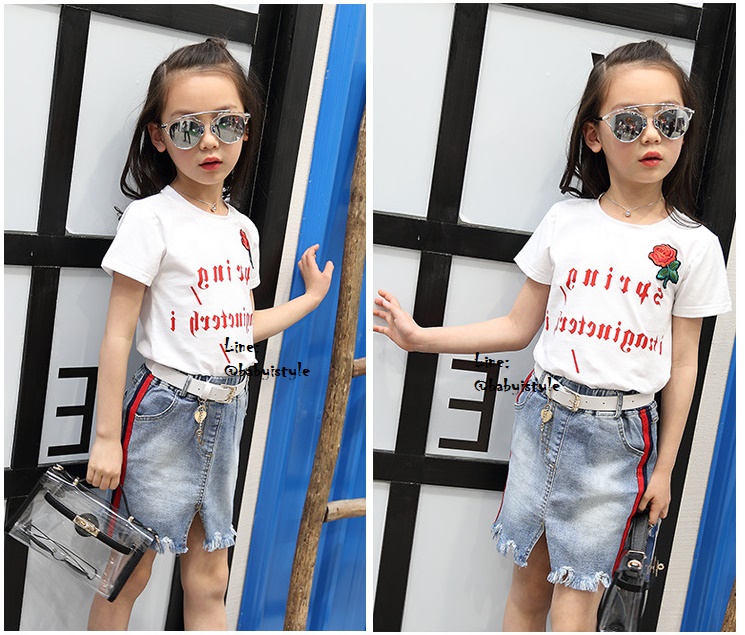เด็กโต-กระโปรงสั้นยีนส์แต่งแถบข้าง เอวยางยืด มีกระเป๋าหลัง ผ้าดี งานสวยน่ารัก