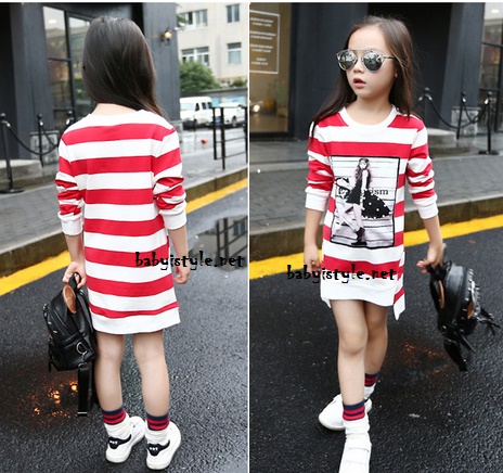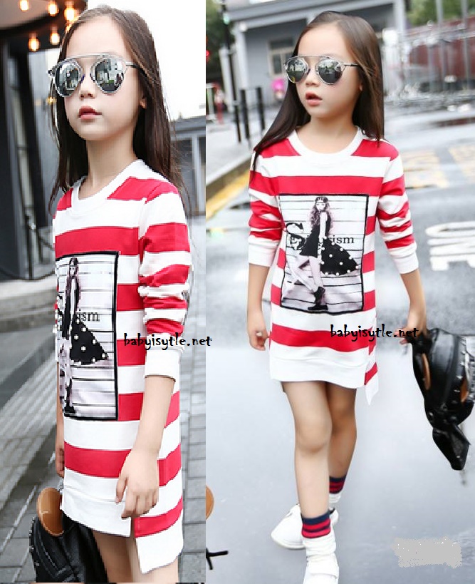 เด็กโต-เดรสแขนยาวลายริ้วสีแดง ลายสาวเปรี้ยว ชายผ่าข้าง ผ้านุ่ม งานสวยเก๋ค่ะ ไซส์ 130/140/150/160