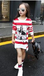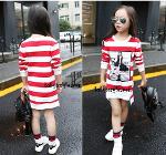 *Sales เด็กโต-เดรสแขนยาวลายริ้วสีแดง ลายสาวเปรี้ยว ชายผ่าข้าง ไซส์ 140 รหัส KKK449A