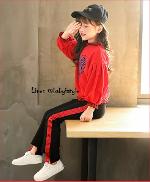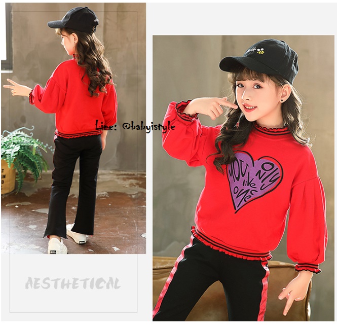 เด็กโต-ชุด2ชิ้นเสื้อแขนยาวจั๊มพ์สีแดงสกรีนหัวใจ You live only one ช่วงไหล่จับจีบ