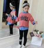 เด็กโต-ชุด3ชิ้นเสื้อแขน3ส่วนสีชมพูอมแดง I like you as muchas RFDIYAS + เสื้อเชิ้ตยีนส์แขนยาวแบบบาง
