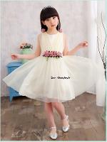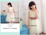 เด็กโต-เดรสออกงานแขนกุดสีครีมเอวแต่งดอกไม้สีชมพูผูกริบบิ้นหลัง ราคา 590 พิเศษ 410 บาท*ไม่รวมค่าส่ง