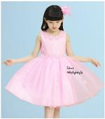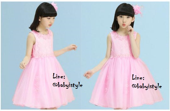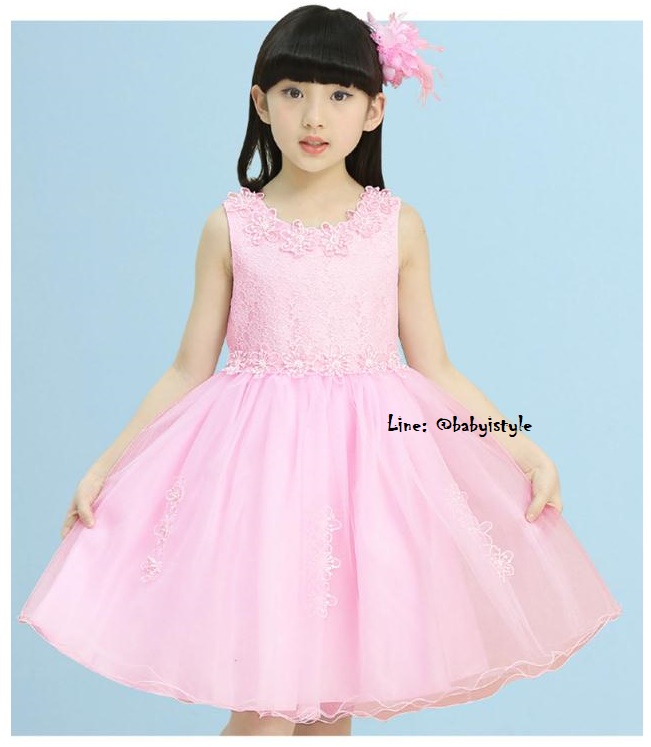 เด็กโต-เดรสออกงานแขนกุดสีชมพู ช่วงบนผ้าลูกไม้ มีริบบิ้นผูก มีซิปหลัง กระโปรงแต่งดอกไม้และมุก ซ้อนผ้าตาข่าย(นุ่ม) มีซับในทั้งตัว งานสวยเริ่ดมากๆ ไซส์ 140/150/160