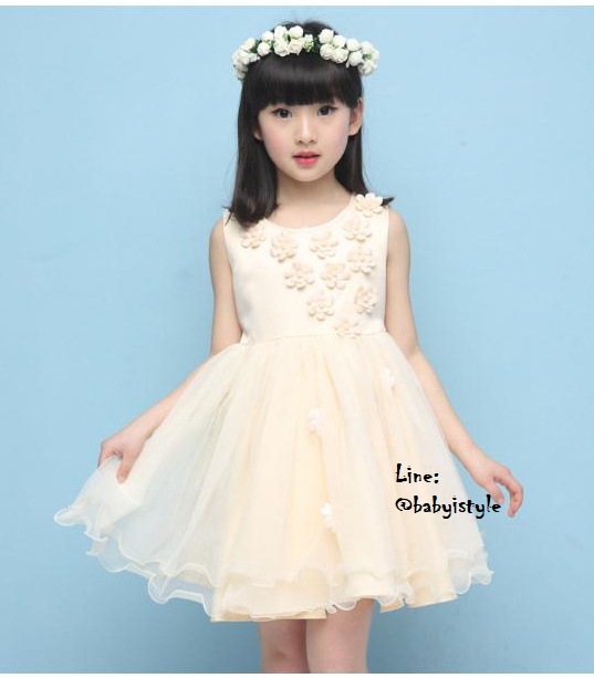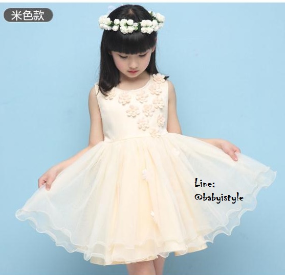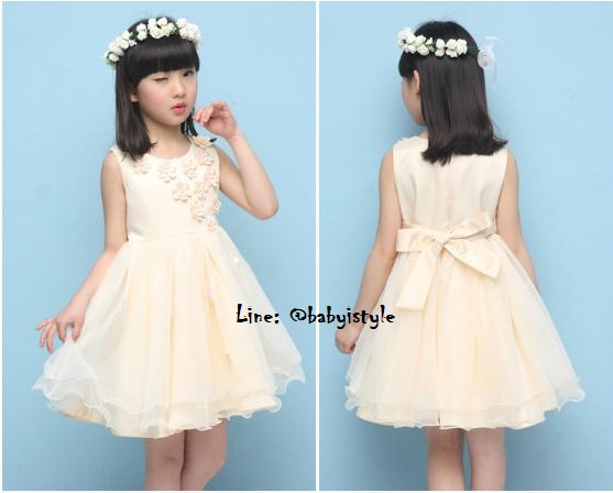เด็กโต-เดรสออกงานแขนกุดสีครีม มีริบบิ้นผูก มีซิปหลัง ราคา 590 พิเศษ 410 บาท*ไม่รวมค่าส่ง