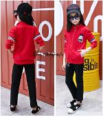 เด็กโต-ชุด2ชิ้นเสื้อแจ็คเก็ตคอตั้งแขนยาวจั๊มพ์สีแดงปักสาวFashionable มีกระเป๋าข้าง (ไม่มีเสื้อตัวใน)