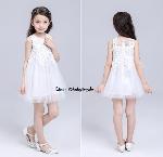 *Salesเด็กโต-เดรสแขนกุดสีขาวติดลูกไม้สีขาวกระโปรงผ่าตาข่าย มีซับใน ซิปหลัง ไซส์ 150/160รหัสKKK853