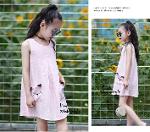 *Sales เด็กโต-เดรสแขนกุดสีชมพูทรงเอ มีกระเป๋าหน้าแมวเหมียว ติดกระดุมหลังไซส์ 140/160 รหัส KKK875A