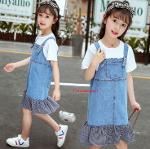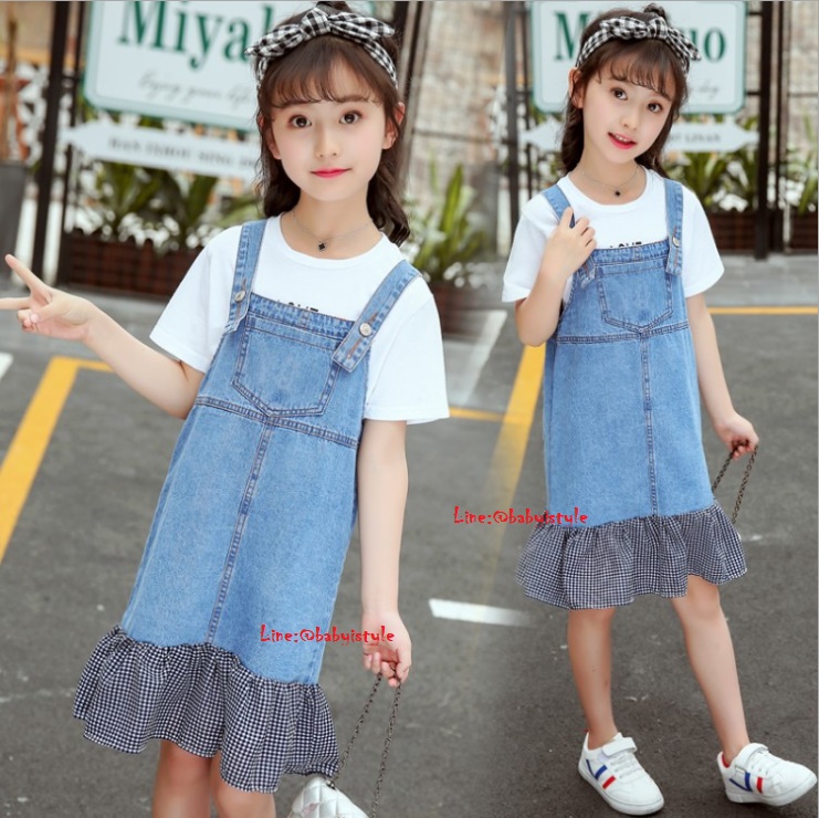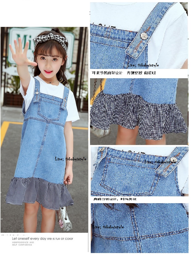 +เอี๊ยมกระโปรงยีนส์ชายต่อผ้าสก็อตสีดำ มีกระเป๋า สายเอี๊ยมแบบติดกระดุมได้ 2 ตำแหน่ง งานสวยน่ารัก