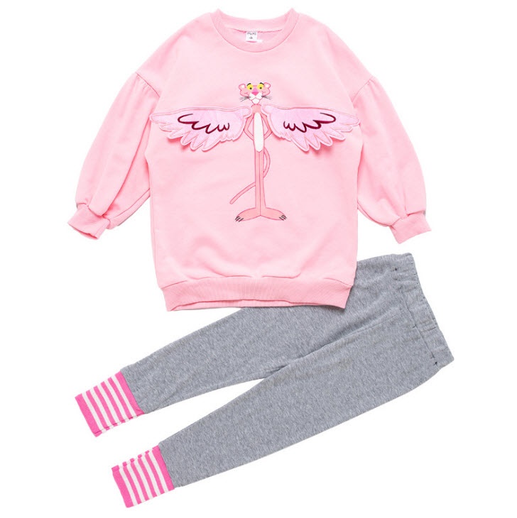 เด็กโต-ชุด2 ชิ้นเสื้อแขนยาวจั๊มพ์สีชมพู Pink Panther ปีก3D