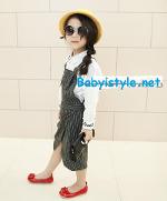 เอี๊ยมกระโปรงทรงตรงผ่าหน้าเว้าโค้งลายริ้วสีเทา (ไม่รวมเสื้อตัวใน)