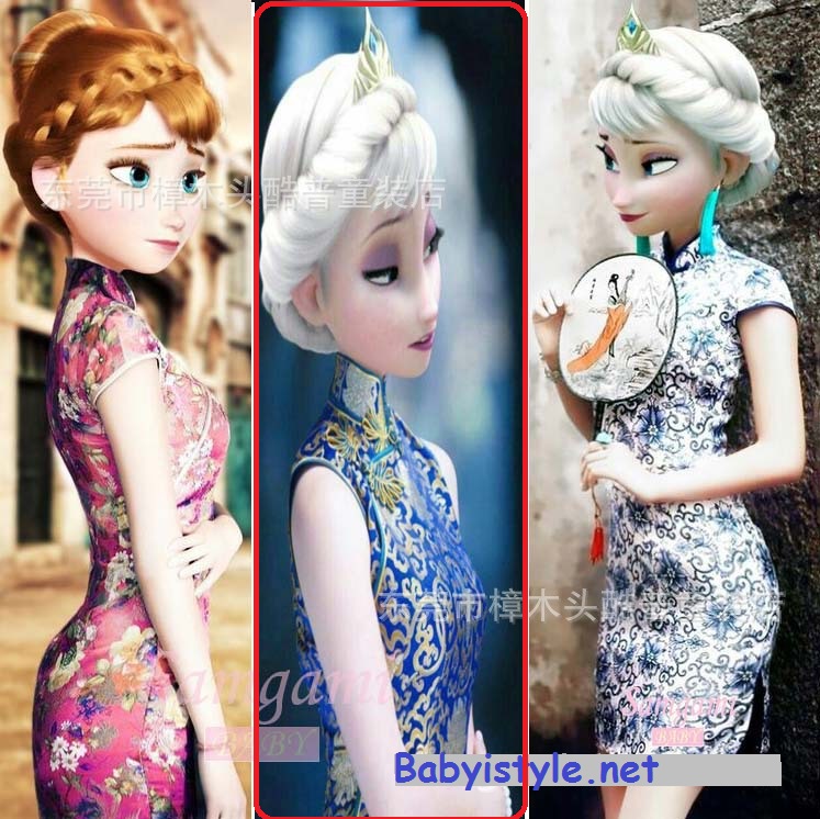 ชุดกี่เพ้าเด็กแขนกุด FROZEN ELSA สีน้ำเงิน มีซิปด้านหลัง สวมใส่ง่าย