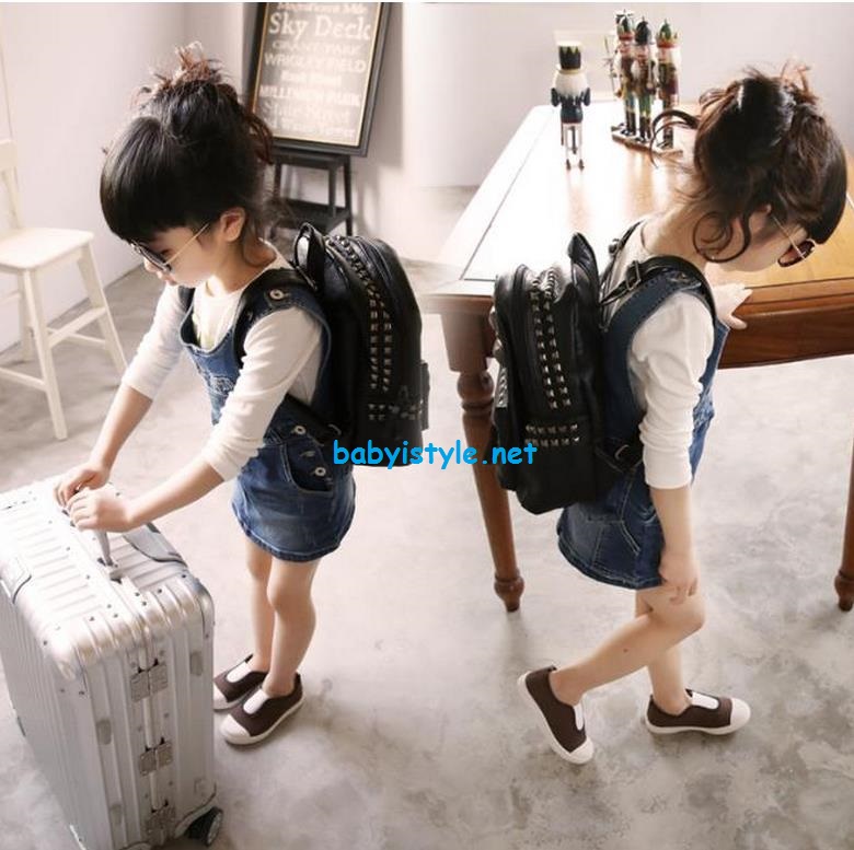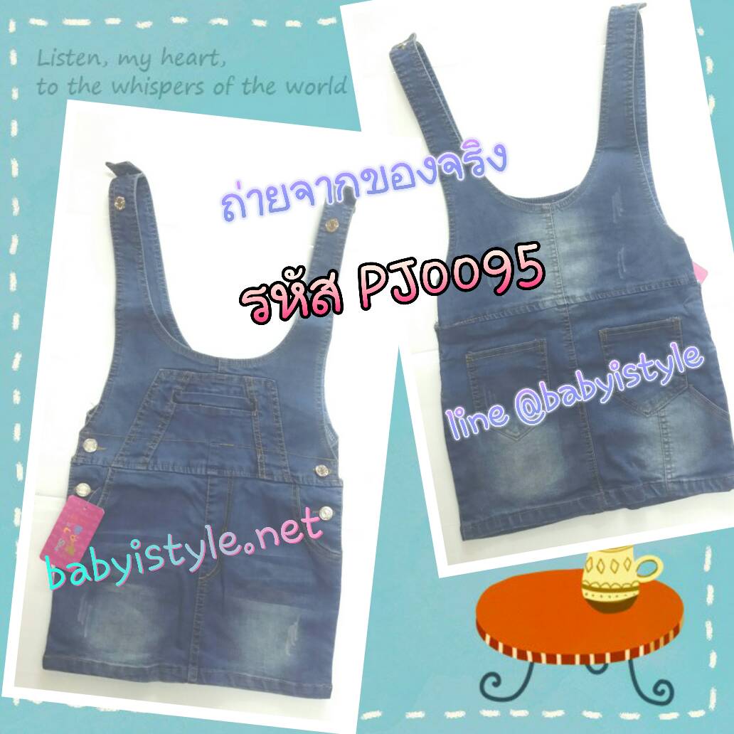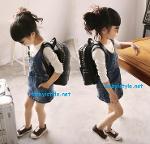 ชุดเอี๊ยมกระโปรงยีนส์ มีกระเป๋าหน้าเล็ก ติดกระดุมข้าง