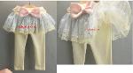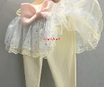 เลกกิ้งกระโปรงขายาวสีครีม แต่งระบายผ้าตาข่ายและลูกไม้ ติดโบว์ใหญ่