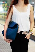 *พร้อมส่ง* กระเป๋าAxixi สีน้ำเงิน หนังนิ่ม สายสะพายเป็นโซ่ทอง สะพายได้2แบบ