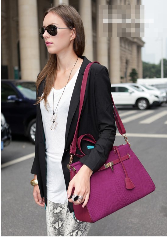 *พร้อมส่ง* กระเป๋าแฟชั่น Axixi สีม่วง แต่งหนังลายงู เหมาะกับสาว ๆ Working