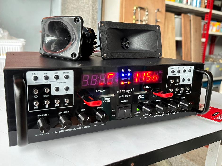 NEST AMP WS-028 เครื่องเสียงเรียกนก 2in1 มี 2 ชุดในเครื่องเดียว พร้อมทาใเมอร์ตั้งเวลาในตัว ทำงานแยกอิสระ กำลังขับ Tweeter ที่ 200 ตัว อ่านได้ทั้ง USB และ SD Card มีพัดลมระบายความร้อนในตัว ซื้อ 1 ได้ถึง 2 คุ้มสุดๆ