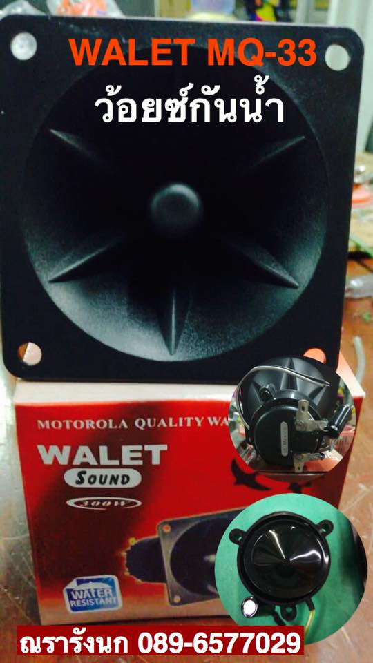 อีเมลล์: swiftletthailandshop@gmail.comMQ33 - WALET MQ-33 Tweeter WaterResistant with CAPACITOR 3x3 ลำโพง TWEETER สำหรับเสียงดึงนกแอ่นคุณสมบัติเด่น คือว้อยซ์กันน้ำ ใช้ประกอบเป็นลำโพงภายในและภายนอกบ้านได้ มี Condenser ในตัว เสียงใส ดึงนกได้เป็นอย่างดี ถ้าใครชอบแนว 3x3 ตัวนี้ท่านไม่ผิดหวังแน่นอน