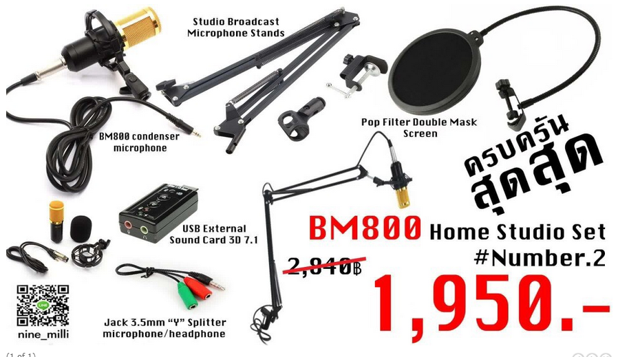 เซ็ตโฮมสตูดิโอพร้อมขาไมค์แบบหนีบขอบโต๊ะ น้ำหนักเบา พกพาง่าย อีกทั้งยังมี Souncard USB สำหรับ Notebook ที่มีปัญหาเรื่องรูเสียบไมค์แบบรูเดียว ช่วยให้เสียงดียิ่งขึ้น และ แจ็คหัวแปลง 3.5mm Y splitter สำหรับบันทึกเสียงกับ Smartphone ระบบ Android