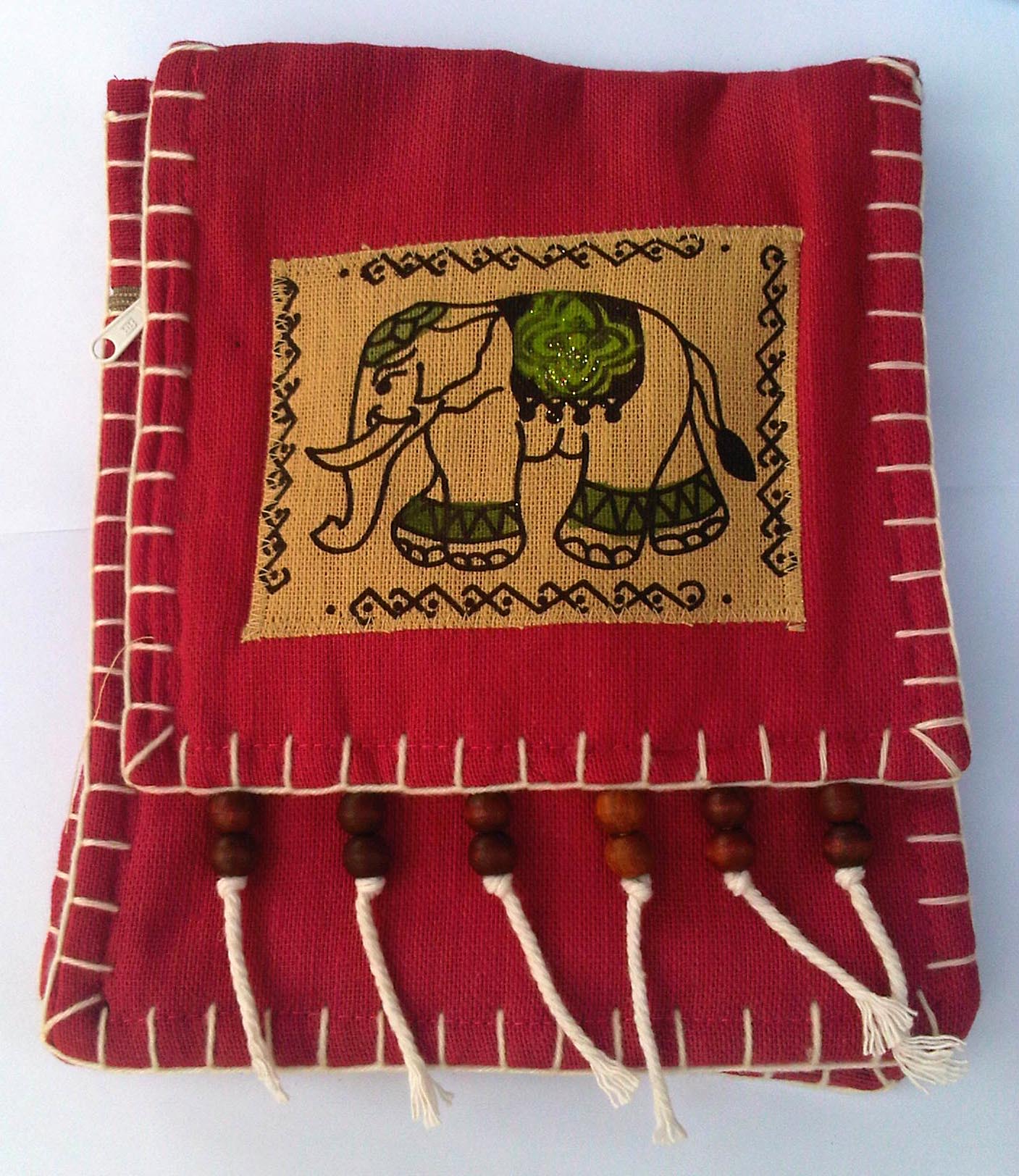 กระเป๋าสะพายผ้าฝ้าย ทรงสี่เหลี่ยม มีรูปช้างตรงกลาง สวยงาม