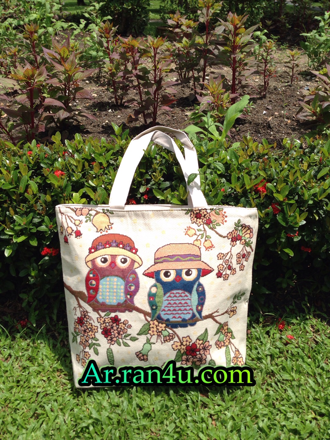 กระเป๋าสะพายผ้าลายนกฮูก2