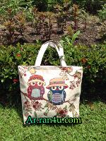 กระเป๋าสะพาย ผ้าฝ้ายทอ พื้นสีขาว ลายสกรีนรูปนกฮูก มีหลายลายให้เลือกชม