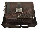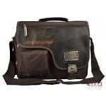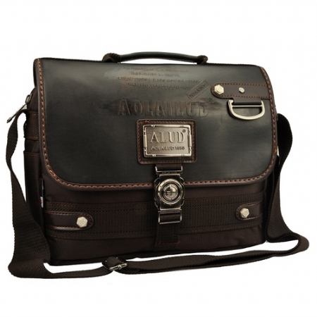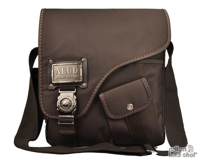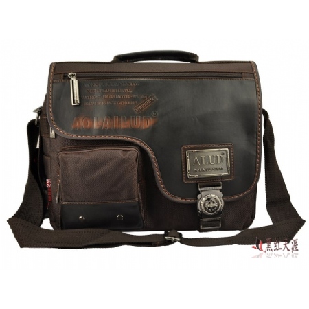 กระเป๋าทำจากผ้ากันน้ำสีน้ำตาลเข้ม ดีไซน์เก๋มาพร้อมกับลายปักริบนูนเด่นชัดเพิ่มความน่าสนใจที่ตัวอักษรหน้ากระเป๋าและอุปกรณ์ตกแต่งเหล็กพิมพ์ราย