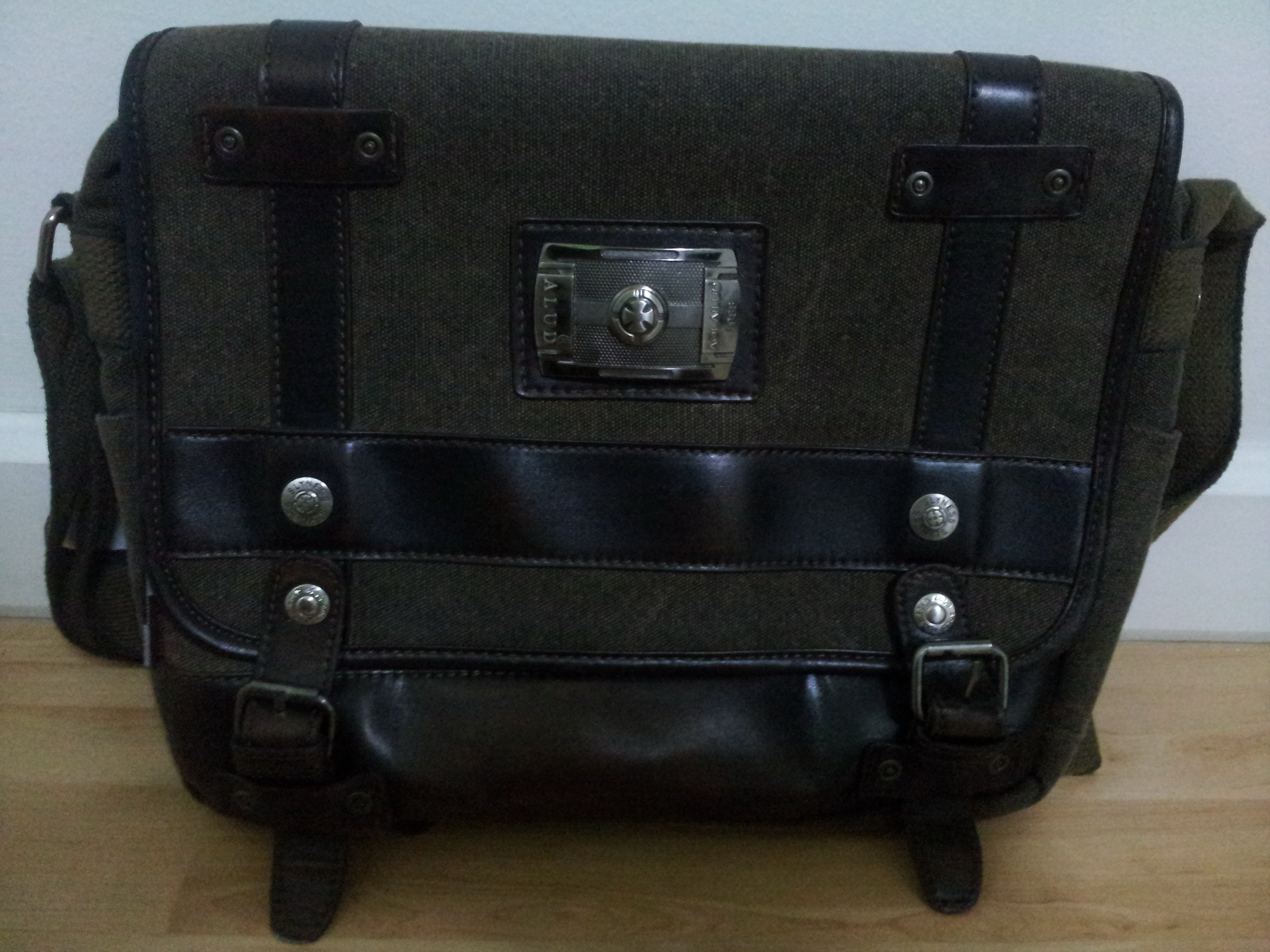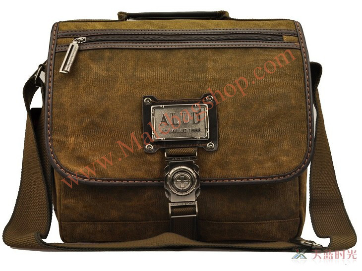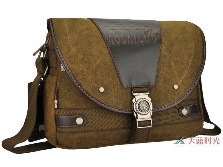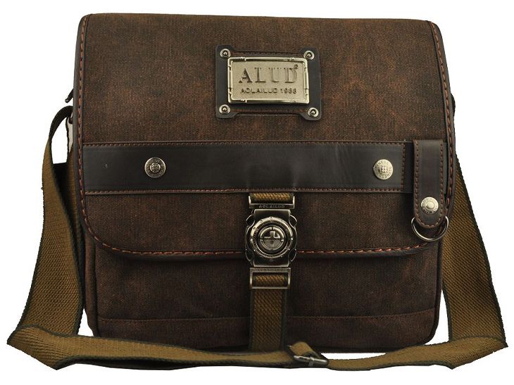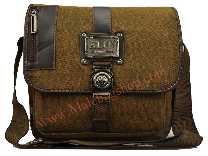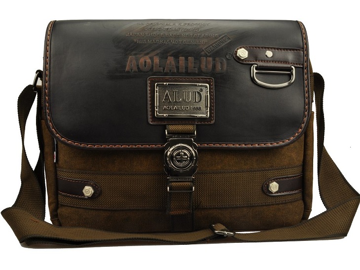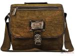 กระเป๋าเป็นผ้าสนิม มาพร้อมกับเหล็กตัวล็อคด้านหน้าลวดลายคลาสสิก เพิ่มฝากระเป๋าเปิด-ปิดด้านบนด้วยหนังแท้ บ่งบอกถึงความเข้มแข็งและแข็งแรงของผู้ใช้งาน (กระเป๋ากว้าง 34 ซม. สูง 29 ซม.)