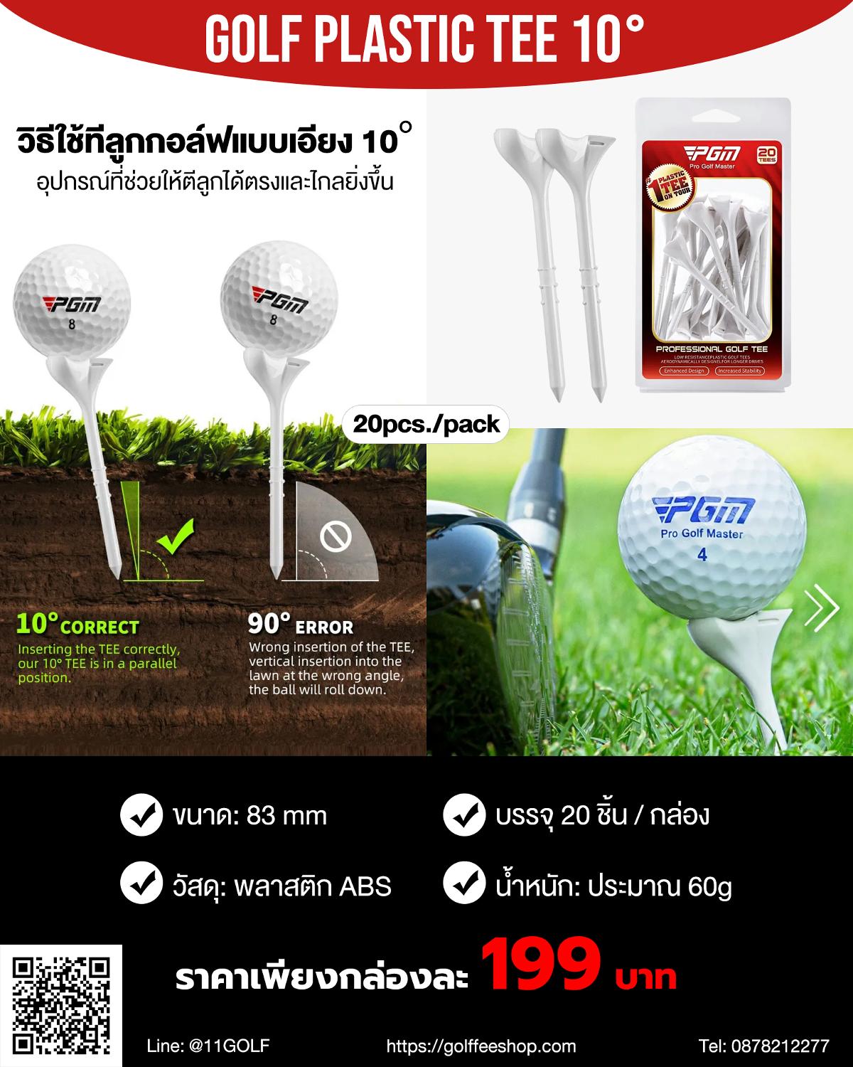 GOLF PLASTIC TEE 10° 83 mm ขนาด 83 มม. บรรจุ 20 ชิ้น / กล่อง ทำจากพลาสติก ABS แข็งแรงทนทาน น้ำหนัก: ประมาณ 60g
