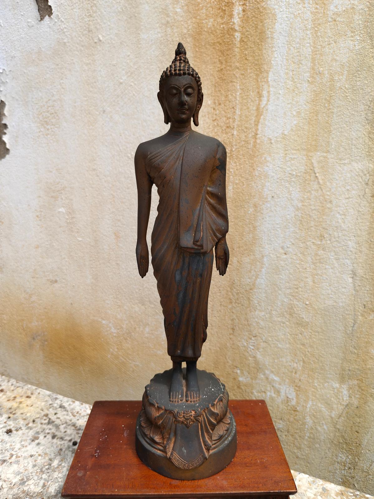 พระพุทธเจ้าปางเปิดโลก พระบูชา หลวงปู่หลิว วัดไร่แตงทอง เนื้อสัมฤทธิ์ ปี 2539 องค์นี้ป้ายชื่อด้านหลังหายนะครับ ใต้ฐานบรรจุชานหมาก เกศา จีวร และเหรียญพญาเต่าจิ๋วเอาไว้