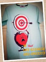 (2.15)Shoot เสื้อยืด ชาย-หญิง สีขาวอมเขียวอ่อน ลายธนูแอปเปิ้ล Size M เนื้อผ้าเบาสบาย ถูกกว่าที่หน้าร้าน