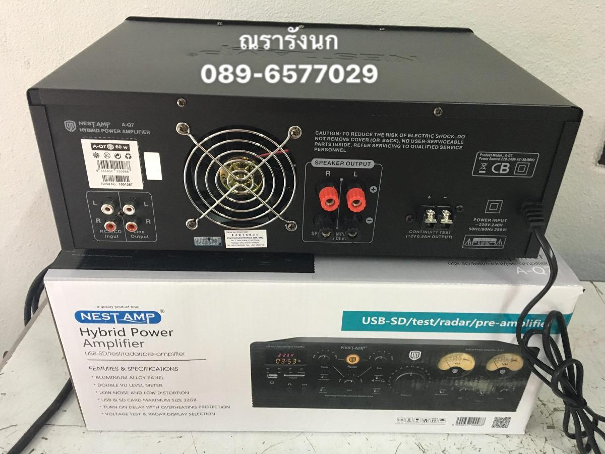 NA-7 NEST AMP AQ-7 Hybrid Power Amplifer ปรับเสียงอัตโนมัติในปุ่มเดียว 2CH Volumeเสียงอิสระ2โซน รองรับลำโพง200ตัว อ่านUSB/SD Card พัดลมระบายความร้อน จุดเด่นมีปุ่ม Radar ปรับความถี่เสียงในแบบที่นกชอบอัตโนมัติ จอวัดกระแสไฟ ตรวจเชคการชอตของลำโพงได้